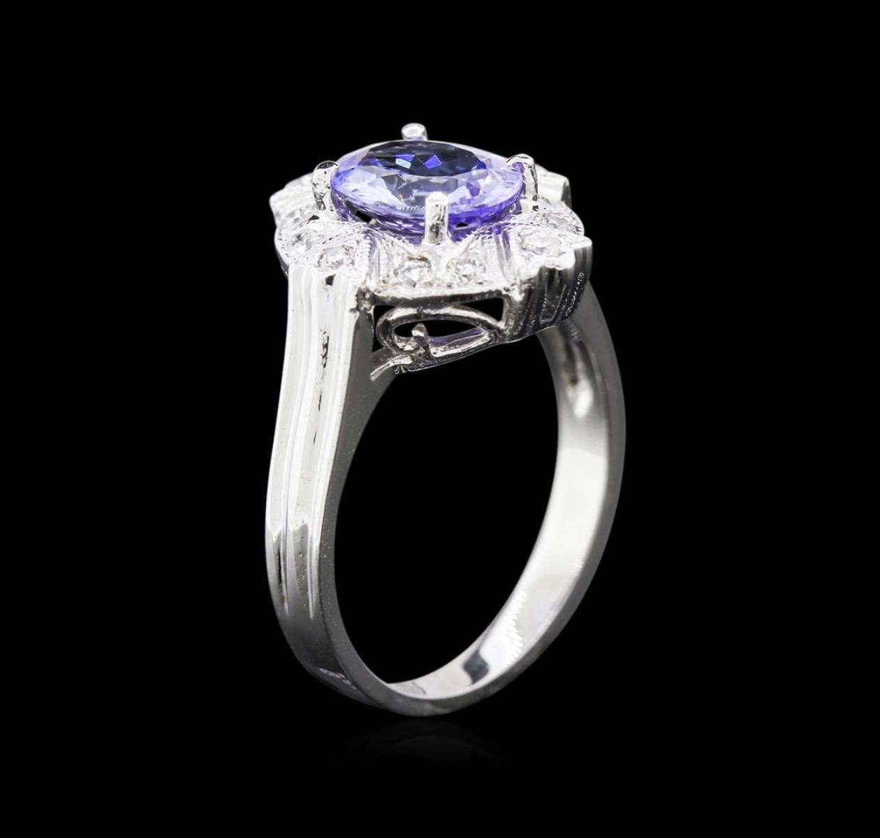 One ring featuring: 14KT white gold weighing 4.60 grams containing one tanzanite center stone with a total weight of 1.67ct and 12 diamonds with a total weight of 0.23ct.