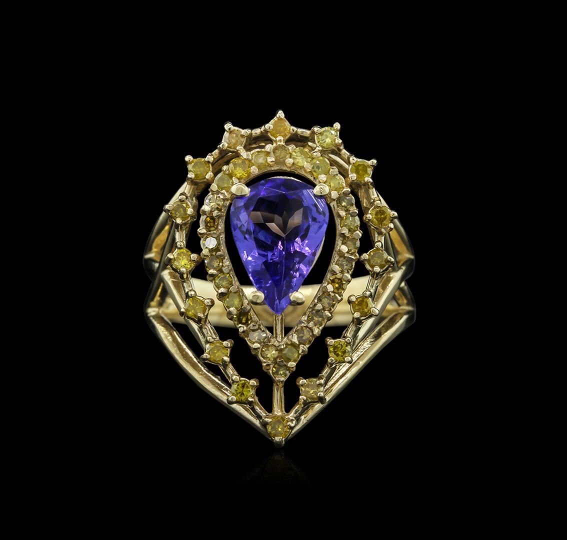 One ring featuring: 14KT yellow gold weighing 6.09 grams containing one tanzanite with a total weight of 1.67ct and 42 diamonds with a total weight of 0.48ct.
