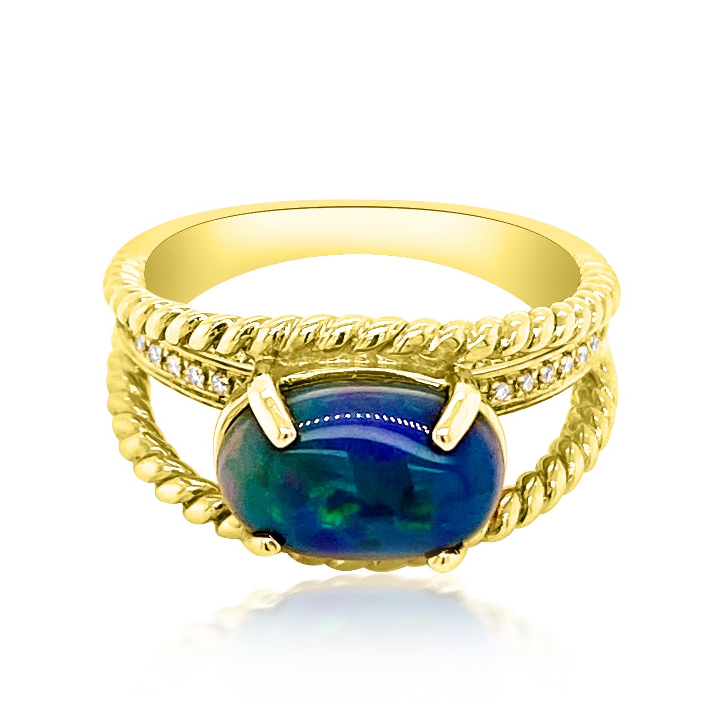1.67ct Natural Opal 14K Yellow Gold 6.71gm Diamond 0.2ct Ring #PJ4690