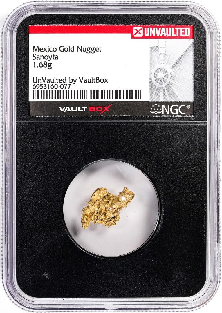 One 1.68 Gram Sanoyta Mexico Gold Nugget NGC Vaultbox Unvaulted. NGC Certified.