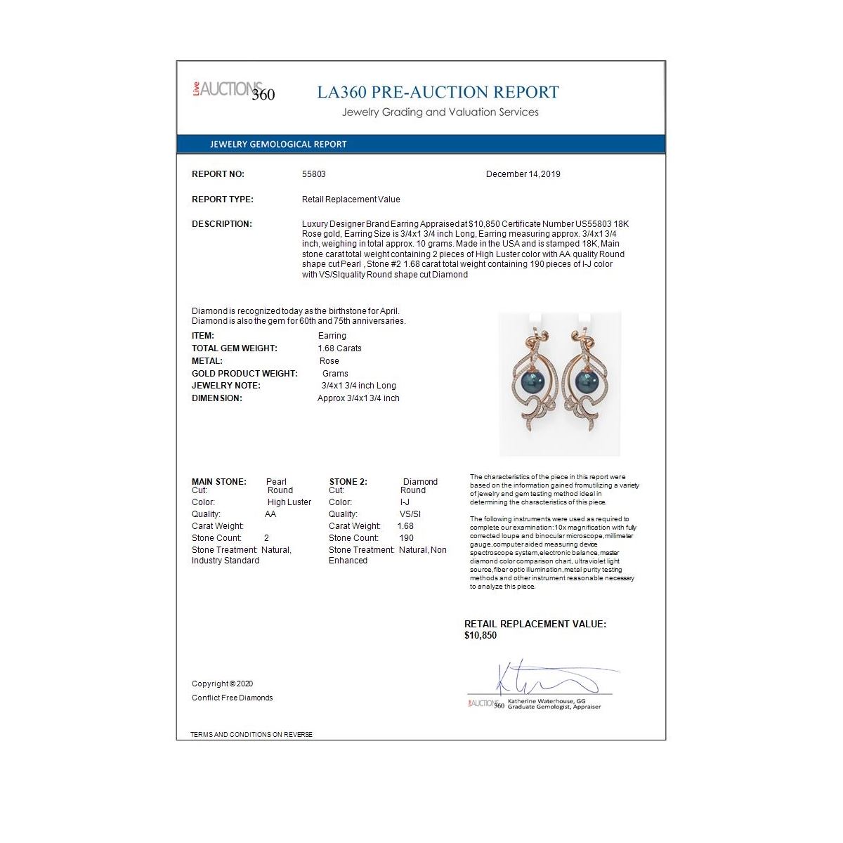 REF-219H3R - SKU: 55803 ---- 1.68 ctw Diamond & Pearl Earrings 18K Rose Gold