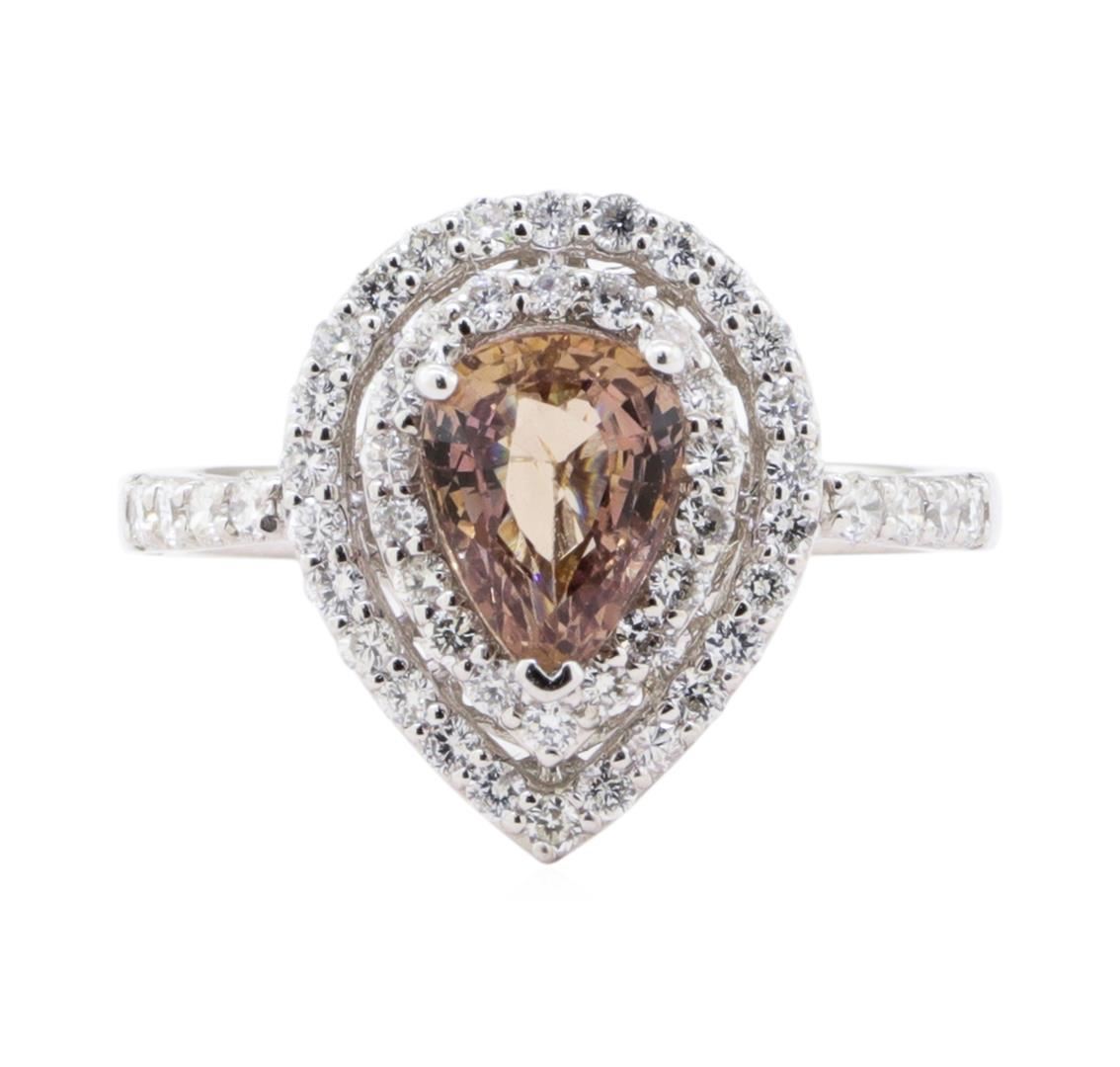 One electronically tested platinum ladies cast & assembled pink sapphire and diamond ring. The featured pink sapphire is set within tiered diamond bezels supported by an elaborate lattice under gallery and diamond ribbon shoulders, completed by a two millimeter wide band. Bright polish finish. Trademark is Orianne. Identified with markings of "PT950". Condition is new, good workmanship. Containing: One prong set pear modified mixed cut natural pink sapphire, measuring 8.18 x 6.07 x 4.14mm, exact weight 1.68ct., type II Clarity is eye clean, medium, slightly grayish, brownish, pink color, (GIA brPi 5/2), cut is good. Transmitting light with no distortion, transparent. No indications of heating (NTE). GIA Gemological Report attached. Graded loose prior to setting in the GIA Laboratory, Report #2175461260. Fifty-Two prong set round brilliant cut diamonds exact total weight 52 Stones = 0.63ct. The clarity grade reflects the overall average for the group. Graded in the setting. Clarity SI-2 to I-1 Color F - G Total Weight of Colored Stones 1.68 ct. Total Weight of Diamonds 0.63 ct. Total Weight of Ring 5.60 gm Estimated Retail Value $ 8,210.00 US