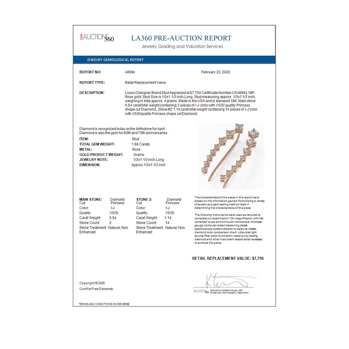 REF-234H4R - SKU: 48994 ---- 1.68 ctw Princess Cut Diamond Designer Earrings 18K Rose Gold