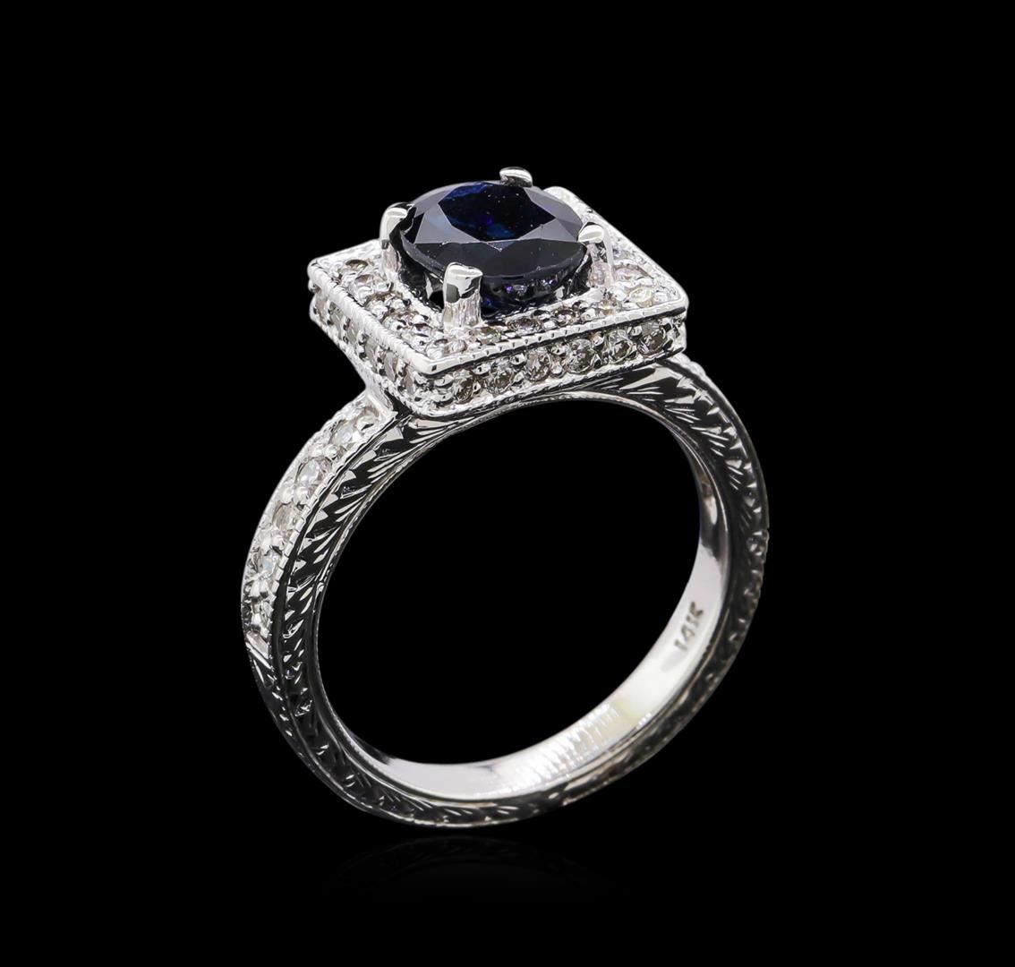 One ring featuring: 14KT white gold weighing 5.20 grams containing one sapphire center weighing 1.68ct and diamonds weighing 0.80ctw.