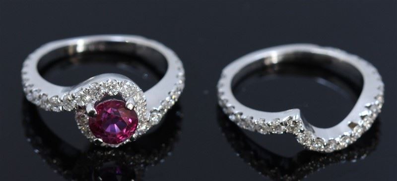 14K W/G RING :6.44GRAM / RUBY :1.68CT / DIAMOND RD :1.80CT / 2PCS RING /#GVR1493