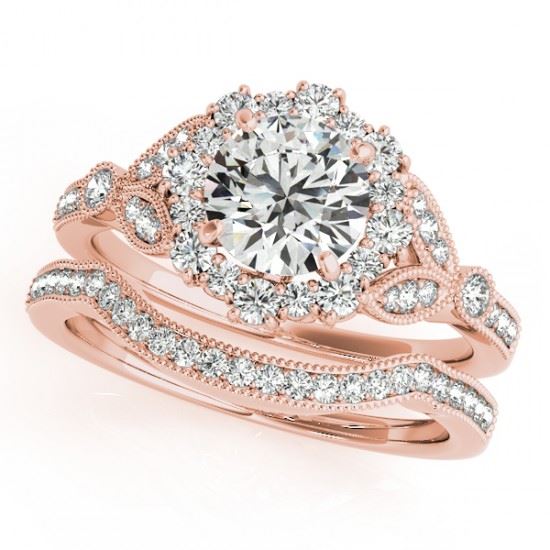 1.69 CTW Certified VS/SI Diamond 2Pc Wedding Set Solitaire Halo 14K Rose Gold ---- Luxury Designer Brand 2 Pc Set Appraised Retail Price at $22,000 ---- SKU Number US30967 14k Rose gold 2 Pc Set Size is 7, 2 Pc Set measuring approx. Uniform, weighing in total approx. 7.6 grams. Made in the USA and is stamped 14k, Main stone 1.00 carat total weight containing 1 pieces of H-J color with VS/SI quality Round shape cut Diamond , Stone #2 0.5 carat total weight containing 36 pieces of H-I color with VS/SI quality Round shape cut