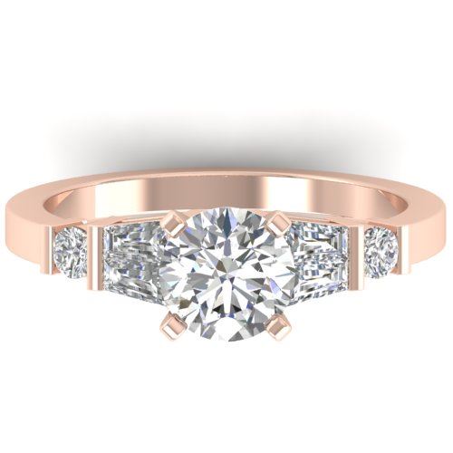 REF-392A8X -30394 ---- 1.69 CTW Certified VS/SI Diamond Solitaire Ring 14K Rose Gold ---- Luxury Designer Brand Ring Appraised at $19,450 Certificate Number US30394 14k Rose gold, Ring Size is 7, Ring measuring approx. Uniform, weighing in total approx. 3.9 grams. Made in the USA and is stamped 14k, Main stone 1 carat total weight containing 1 pieces of H-J color with VS/SI quality Round shape cut Diamond , Stone #2 0.55 carat total weight containing 4 pieces of H-I color with VS/SI quality Baguette shape cut Diamond , Stone #3 0.14 carat total weight containing 2 pieces of G-H color with VS/SI quality Round shape cut Diamond