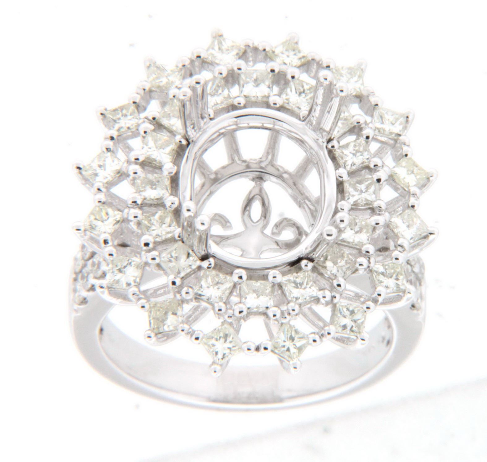 REF-227X3R - JF401551 ---- 1.69 CTW White Round Diamond & Princess Diamond Semi Mount Ring 18K White Gold