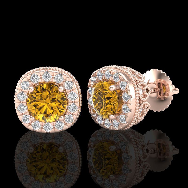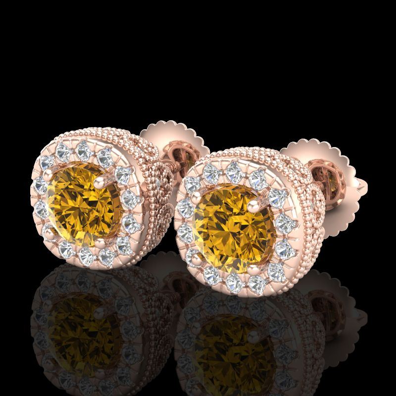REF-254X5T -37995 ---- 1.69 CTW Intense Fancy Yellow Diamond Art Deco Stud Earrings 18K Rose Gold ---- Luxury Designer Brand Earring Appraised at $16,800 Certificate Number US37995 18k Rose gold, Earring Size is Larger, Earring measuring approx. Uniform, weighing in total approx. 4.2 grams. Made in the USA and is stamped 18k, Main stone 1.12 carat total weight containing 2 pieces of Intense Fancy Yellow color with SI quality Round shape cut Diamond , Stone #2 0.57 carat total weight containing 48 pieces of H-I color with VS/SI quality Round shape cut Diamond