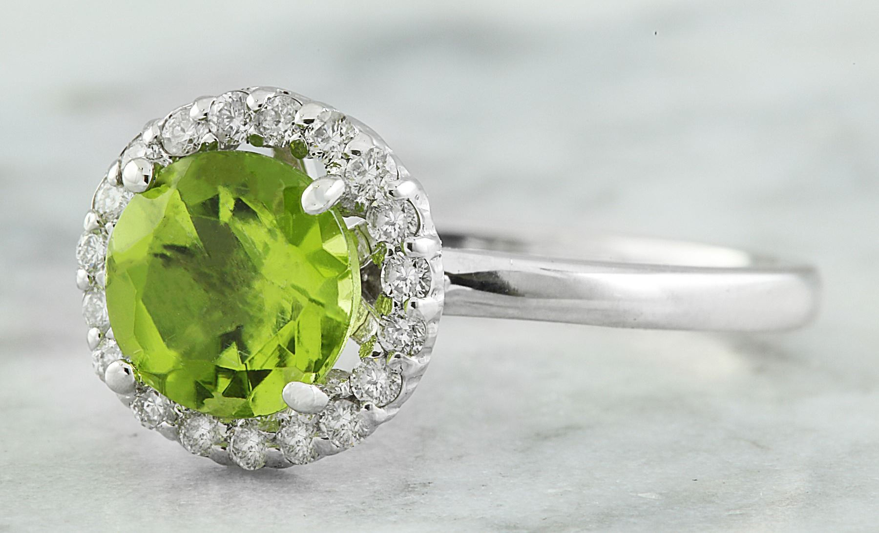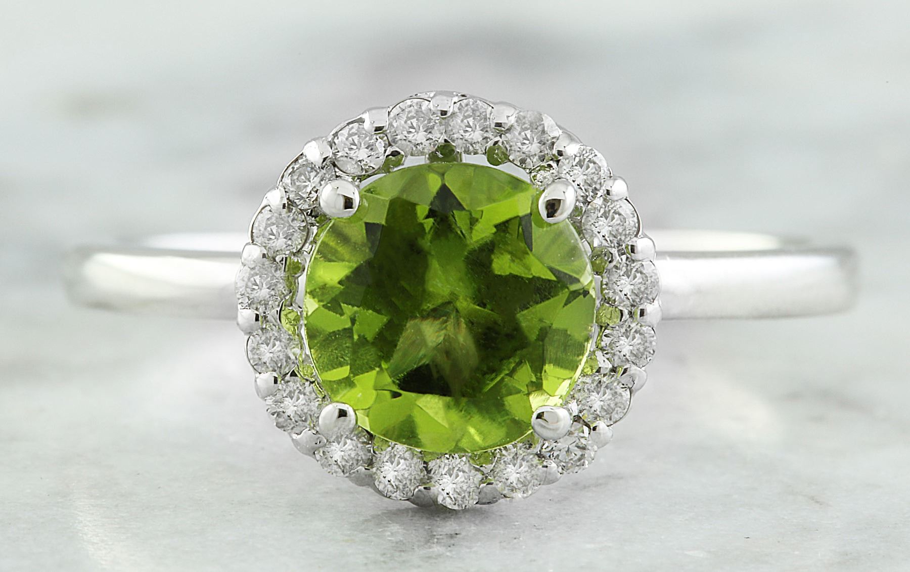 1.69 CTW Peridot 14K White Gold Diamond Ring