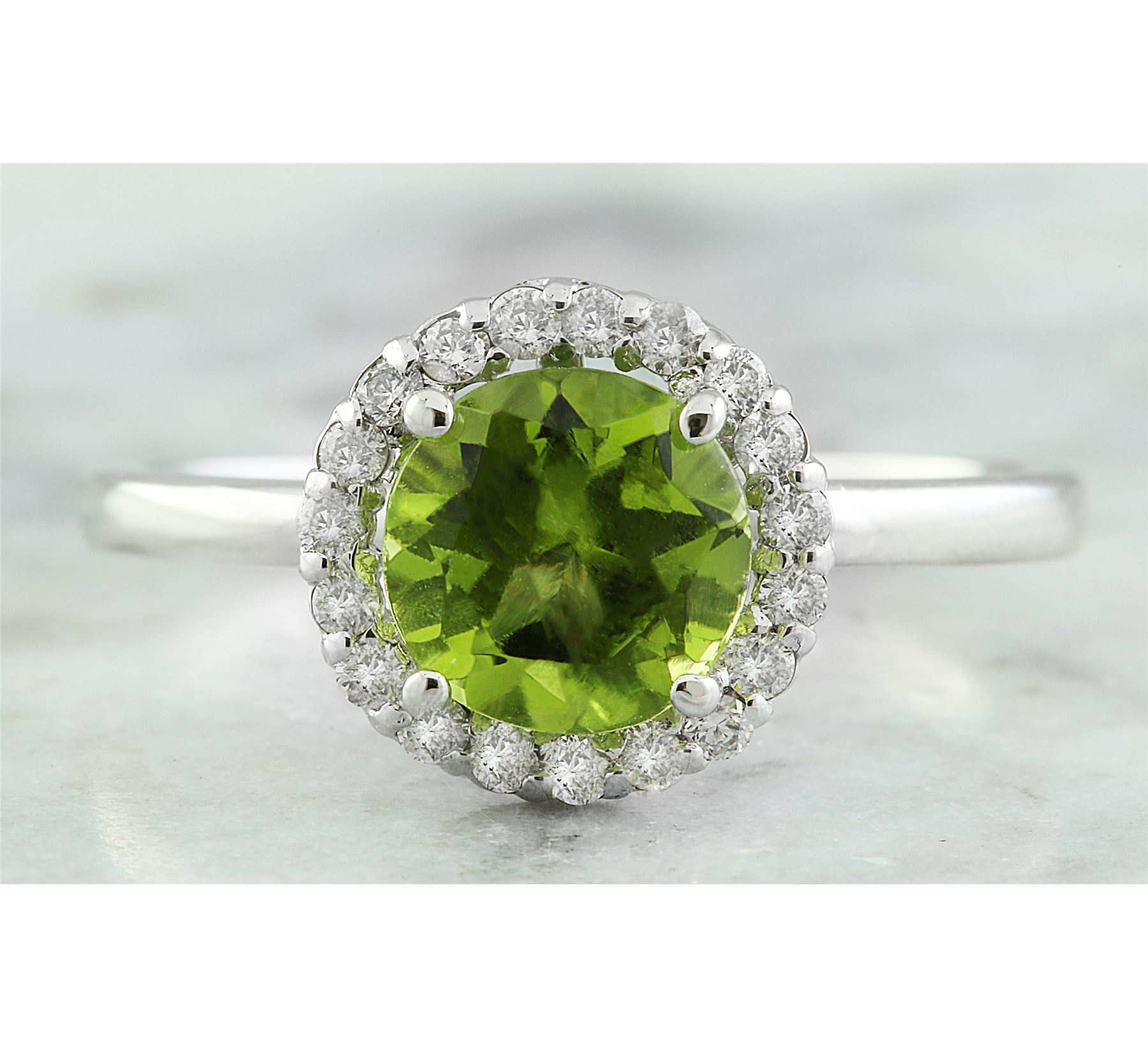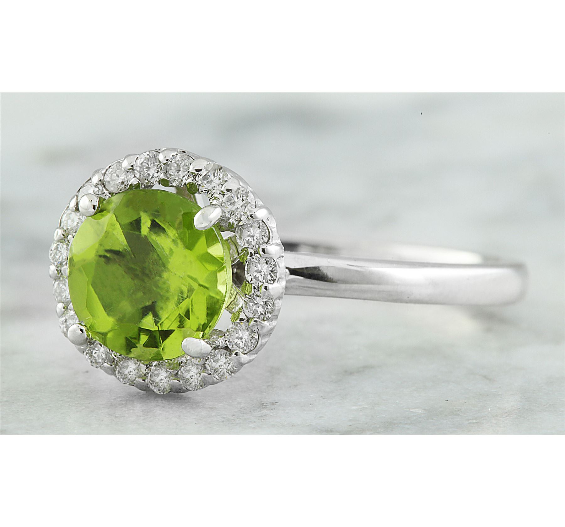 1.69 CTW Peridot 18K White Gold Diamond Ring