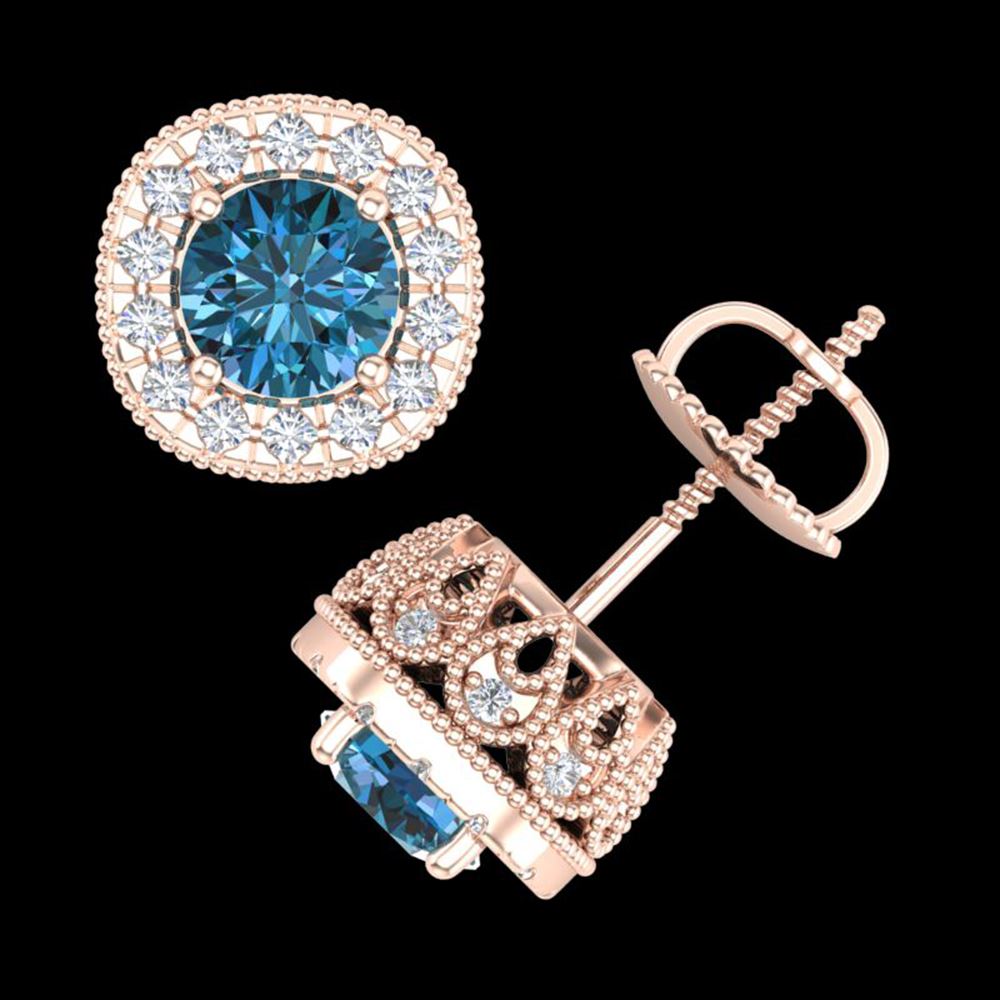 REF-176X4A - SKU: 37993 ---- 1.69 ctw Fancy Intense Blue Diamond Art Deco Earrings 18k Rose Gold