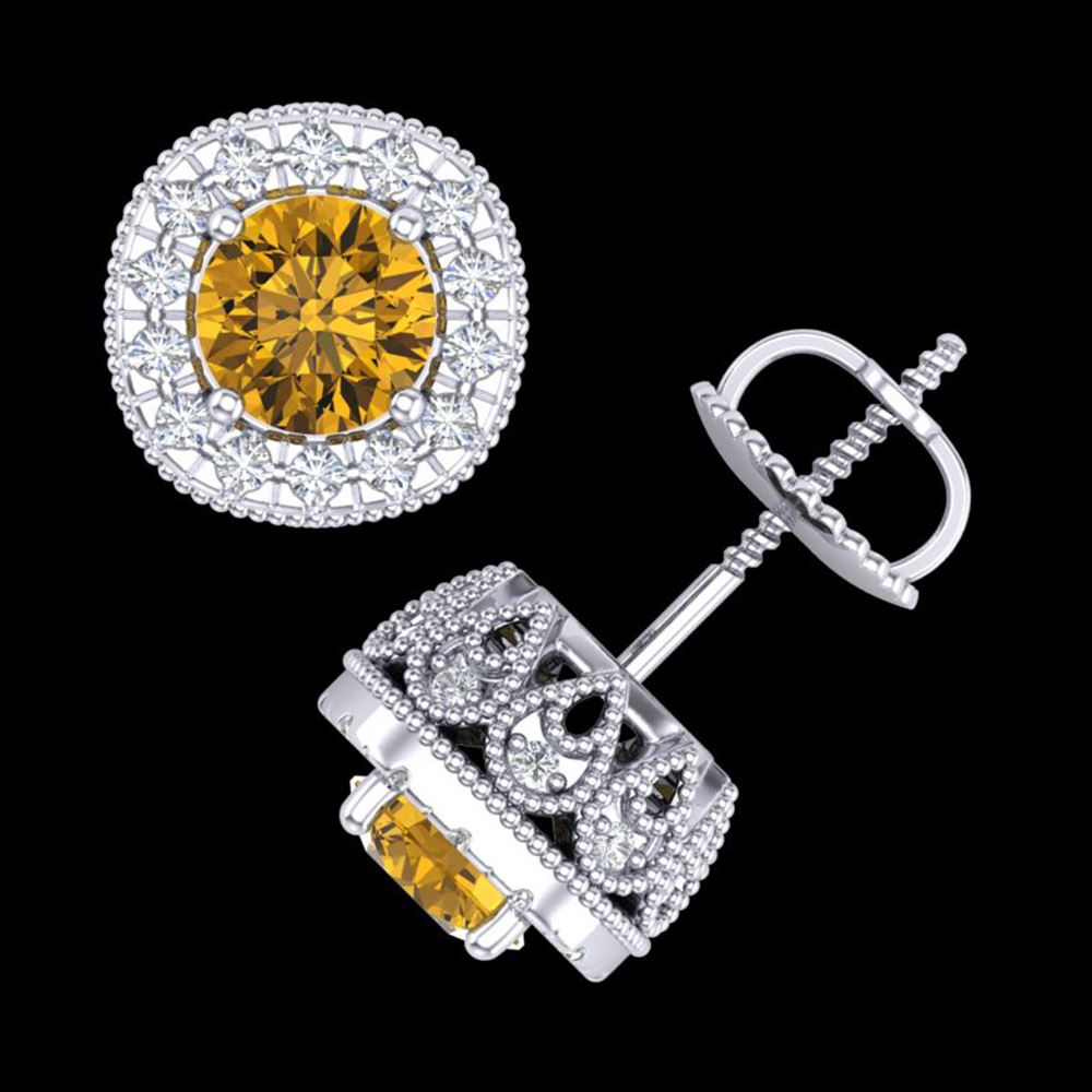 REF-254R5K - SKU: 37994 ---- 1.69 ctw Intense Fancy Yellow Diamond Art Deco Earrings 18k White Gold
