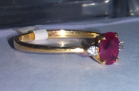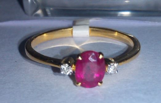 1.69g Ring made of 18kt Gold , 0.04 Ct Diamond and 0.59 Ct Ruby