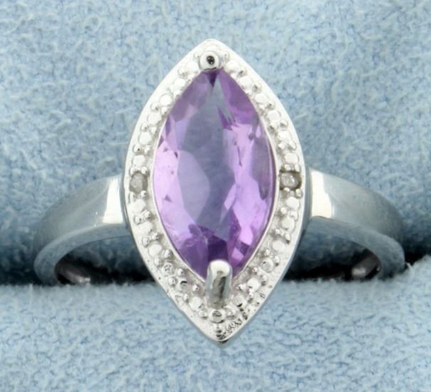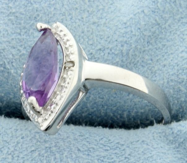 In halo inspired platinum over sterling silver mounting with diamonds. Size 7 1/2 2.5g