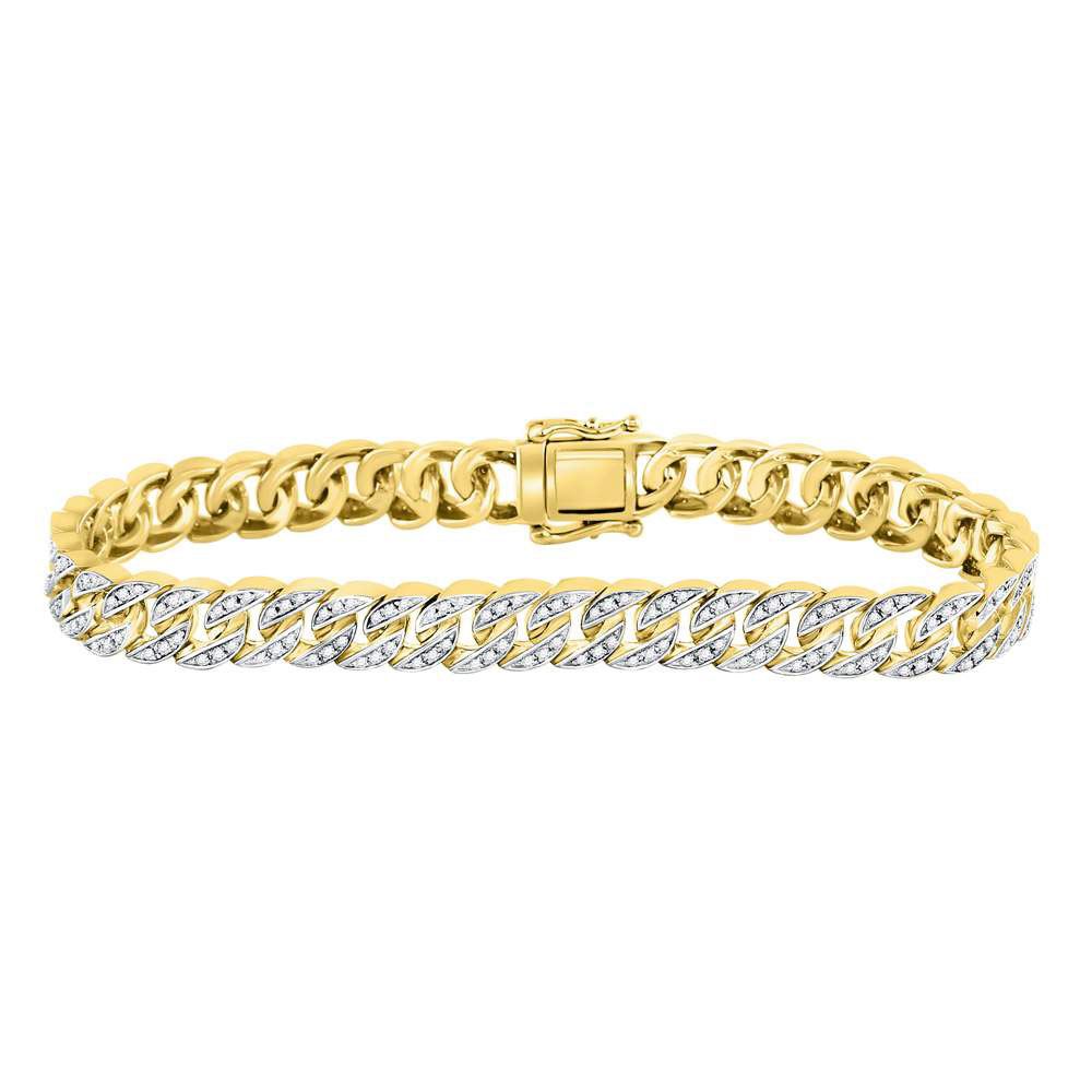 10kt Yellow Gold Mens Round Diamond Cuban Link Bracelet 1-1/2 Cttw