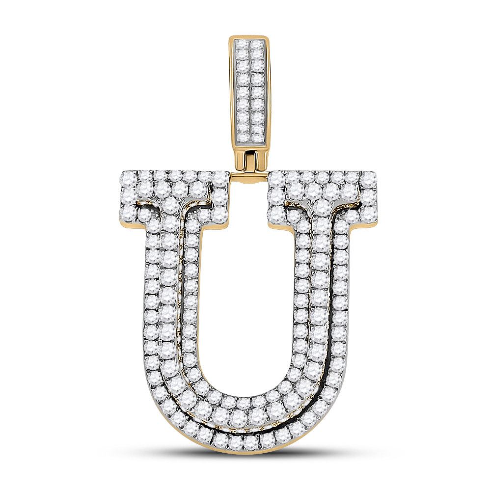 REF-113W2H - 1 & 7/8 CTW Mens Round Diamond Letter U Charm Pendant 10kt Yellow Gold - REF-113W2H