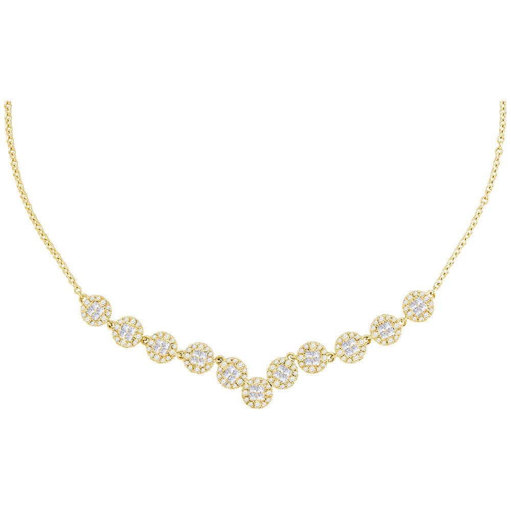 14kt Yellow Gold Womens Princess Diamond Cluster Luxury Necklace 1-7/8 Cttw