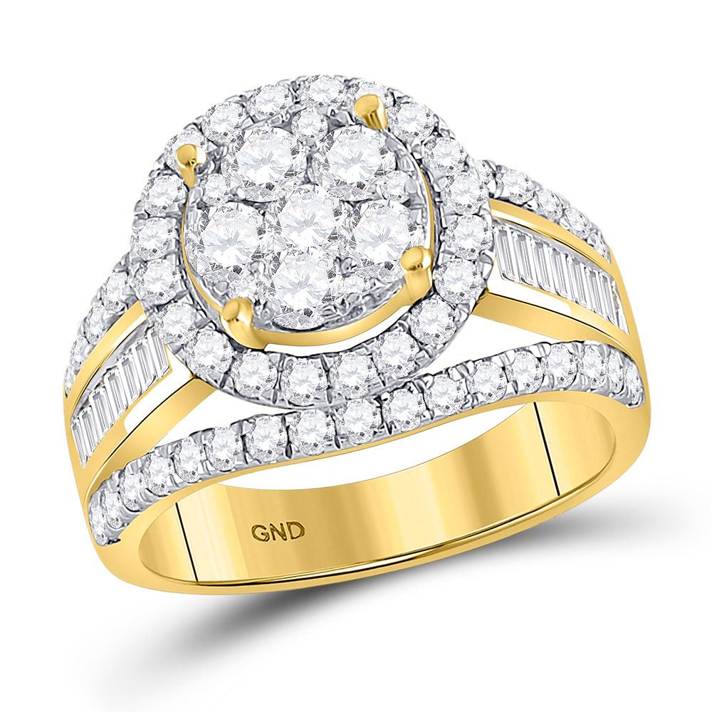 14kt Yellow Gold Womens Round Diamond Flower Cluster Bridal Wedding Engagement Ring 1-7/8 Cttw