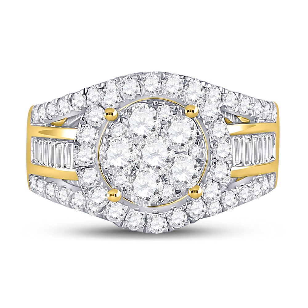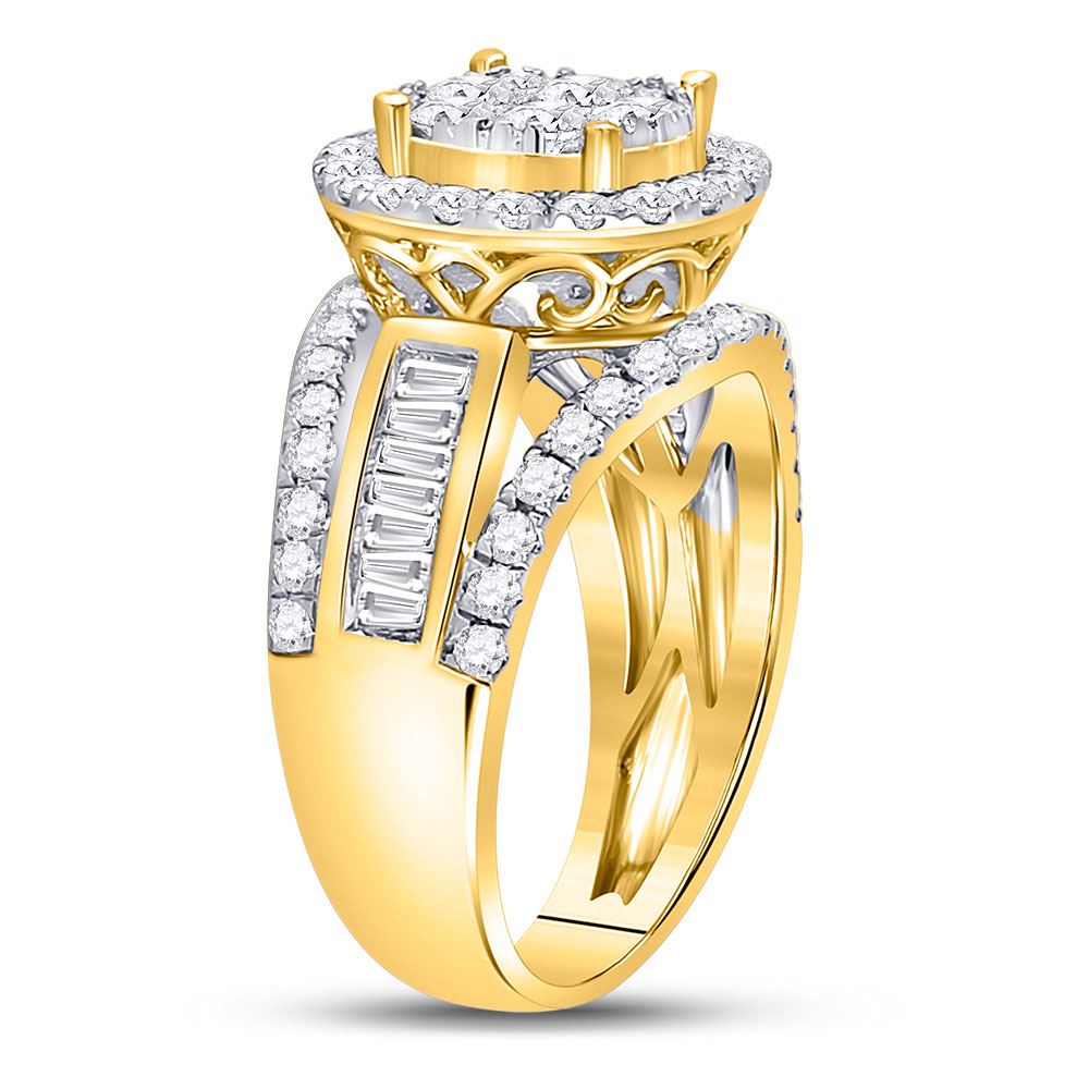 14kt Yellow Gold Womens Round Diamond Flower Cluster Bridal Wedding Engagement Ring 1-7/8 Cttw