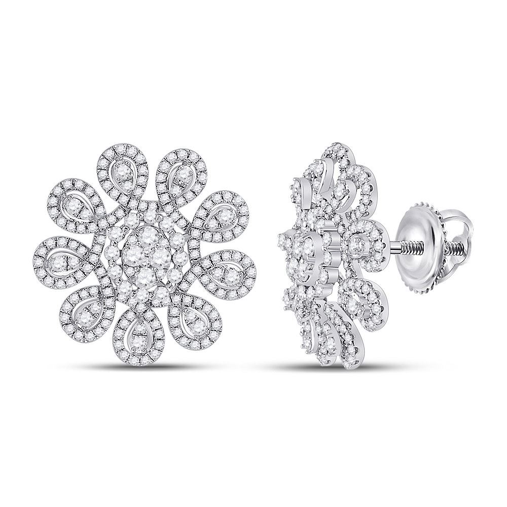 REF-166M4F - 1 & 7/8 CTW Womens Round Diamond Starburst Cluster Earrings 14kt White Gold - REF-166M4F