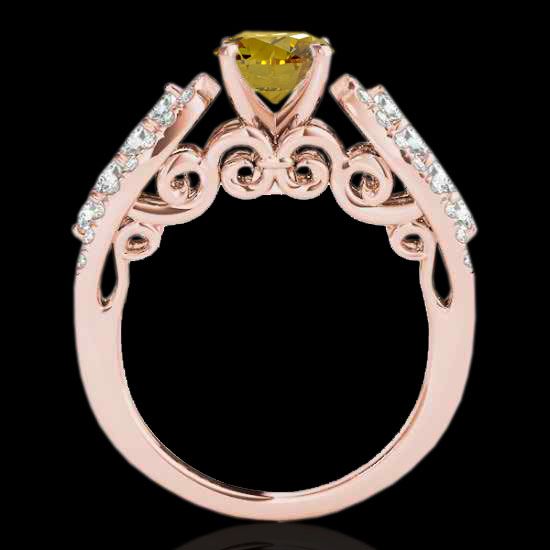 1.7 CTW Certified Si Fancy Intense Yellow Diamond Solitaire Ring 10K Rose Gold ---- Luxury Designer Brand Ring Appraised Retail Price at $11,900 ---- SKU Number US35267 10k Rose gold Ring Size is 7, Ring measuring approx. Uniform, weighing in total approx. 5.2 grams. Made in the USA and is stamped 10k, Main stone 1.00 carat total weight containing 1 pieces of Intense Fancy Yellow color with SI quality Round shape cut Diamond , Stone #2 0.7 carat total weight containing 42 pieces of H-I color with VS/SI quality Round shape cut