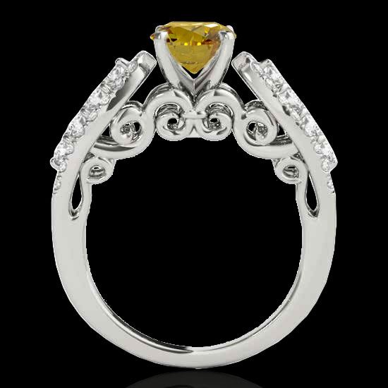 1.7 CTW Certified Si Fancy Intense Yellow Diamond Solitaire Ring 10K White Gold ---- Luxury Designer Brand Ring Appraised Retail Price at $11,900 ---- SKU Number US35266 10k White gold Ring Size is 7, Ring measuring approx. Uniform, weighing in total approx. 5.2 grams. Made in the USA and is stamped 10k, Main stone 1.00 carat total weight containing 1 pieces of Intense Fancy Yellow color with SI quality Round shape cut Diamond , Stone #2 0.7 carat total weight containing 42 pieces of H-I color with VS/SI quality Round shape cut