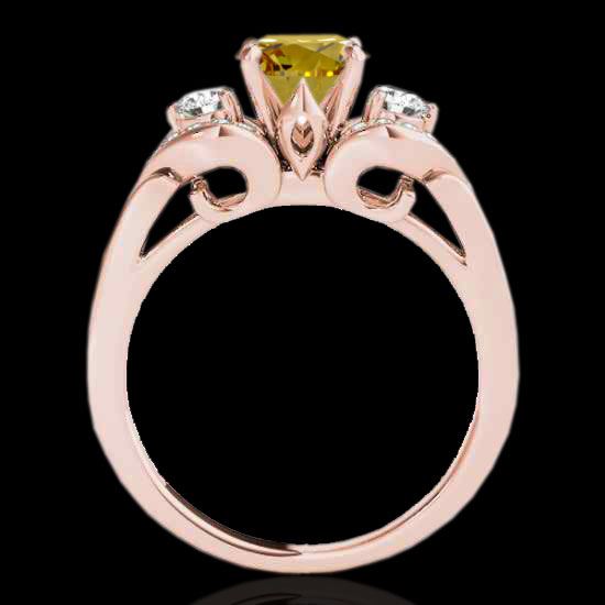 REF-305M5H -35348 ---- 1.7 CTW Certified Si Intense Yellow Diamond 3 Stone Solitaire Ring 10K Rose Gold ---- Luxury Designer Brand Ring Appraised at $20,150 Certificate Number US35348 10k Rose gold, Ring Size is 7, Ring measuring approx. Uniform, weighing in total approx. 4.8 grams. Made in the USA and is stamped 10k, Main stone 1.25 carat total weight containing 1 pieces of Intense Fancy Yellow color with SI quality Round shape cut Diamond , Stone #2 0.45 carat total weight containing 24 pieces of H-I color with VS/SI quality Round shape cut Diamond
