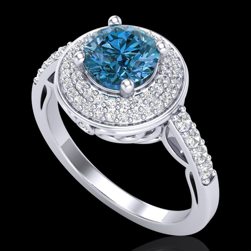 1.7 CTW Intense Blue Diamond Solitaire Engagement Art Deco Ring 18K White Gold ---- Luxury Designer Brand Ring Appraised Retail Price at $16,800 ---- SKU Number US38125 18k White gold Ring Size is 7, Ring measuring approx. Uniform, weighing in total approx. 10 grams. Made in the USA and is stamped 18k, Main stone 1.00 carat total weight containing 1 pieces of Intense Fancy Blue color with SI quality Round shape cut Diamond , Stone #2 0.7 carat total weight containing 60 pieces of H-I color with VS/SI quality Round shape cut