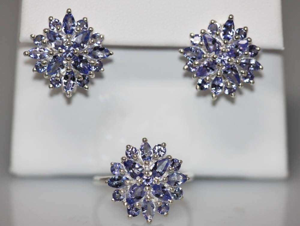 1.7 CTW TANZANITE .925 STERLING SILVER RING/EARRING SET **|**|** 1.7 CTW TANZANITE .925 STERLING SILVER RING/EARRING SET