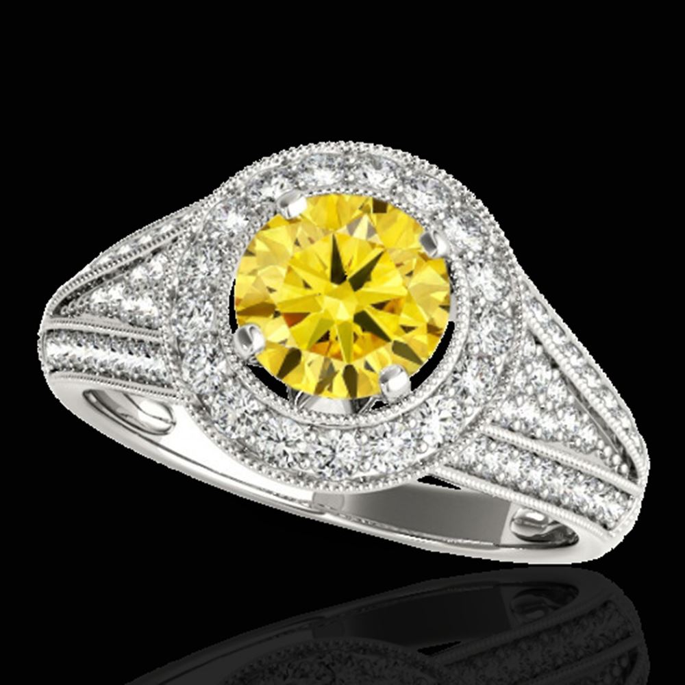REF-211N4F - SKU: 33974 ---- 1.7 ctw Certified SI/I Fancy Intense Yellow Diamond Ring 10k White Gold