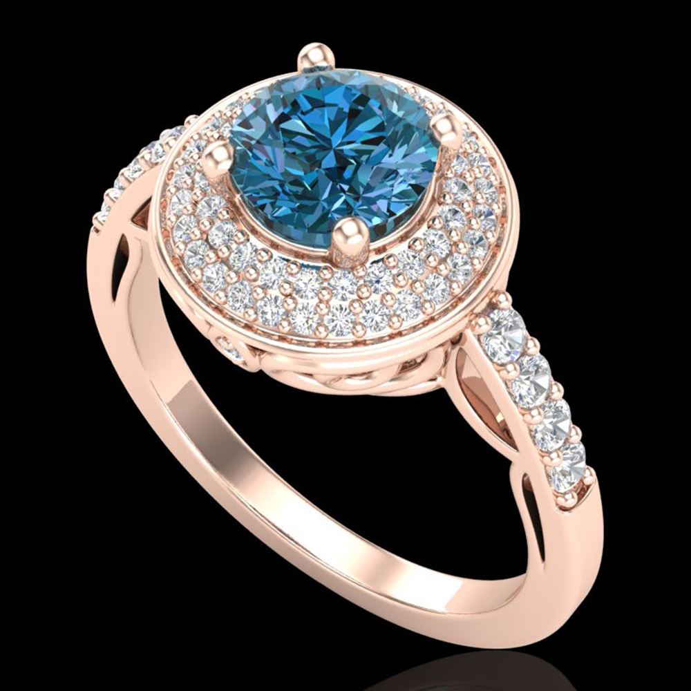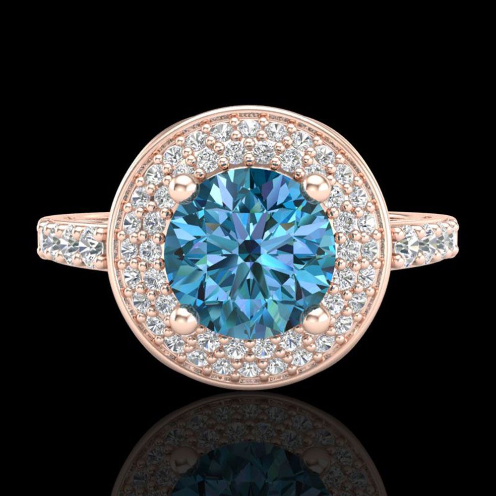 REF-236W4H - SKU: 38126 ---- 1.7 ctw Intense Blue Diamond Engagment Art Deco Ring 18k Rose Gold