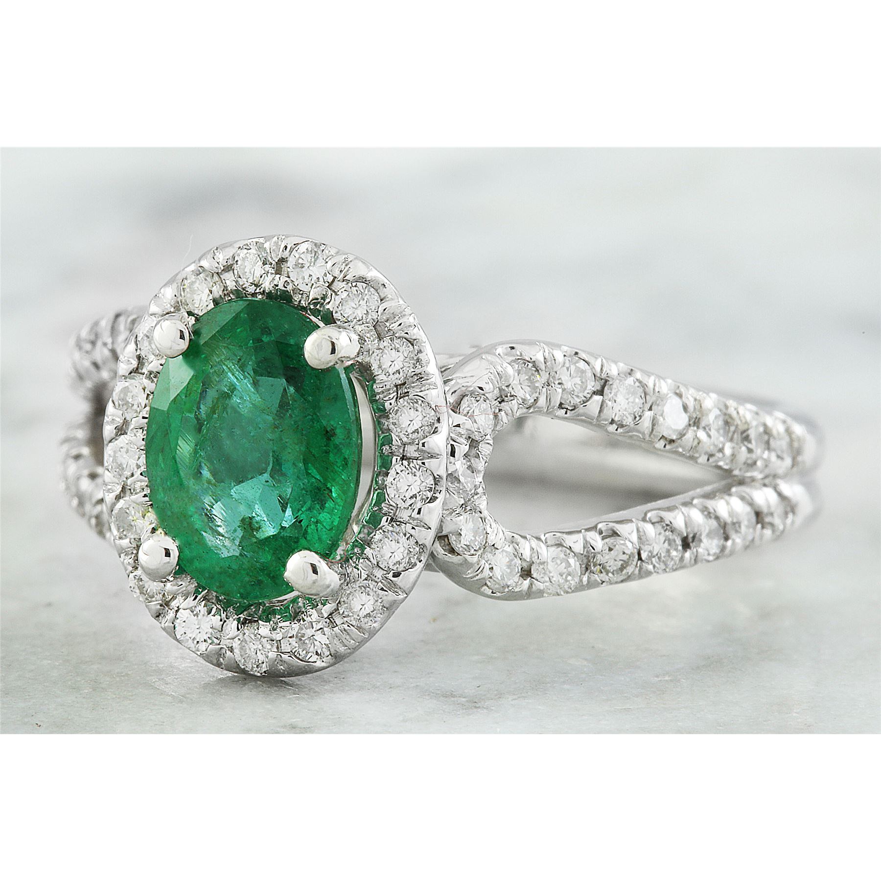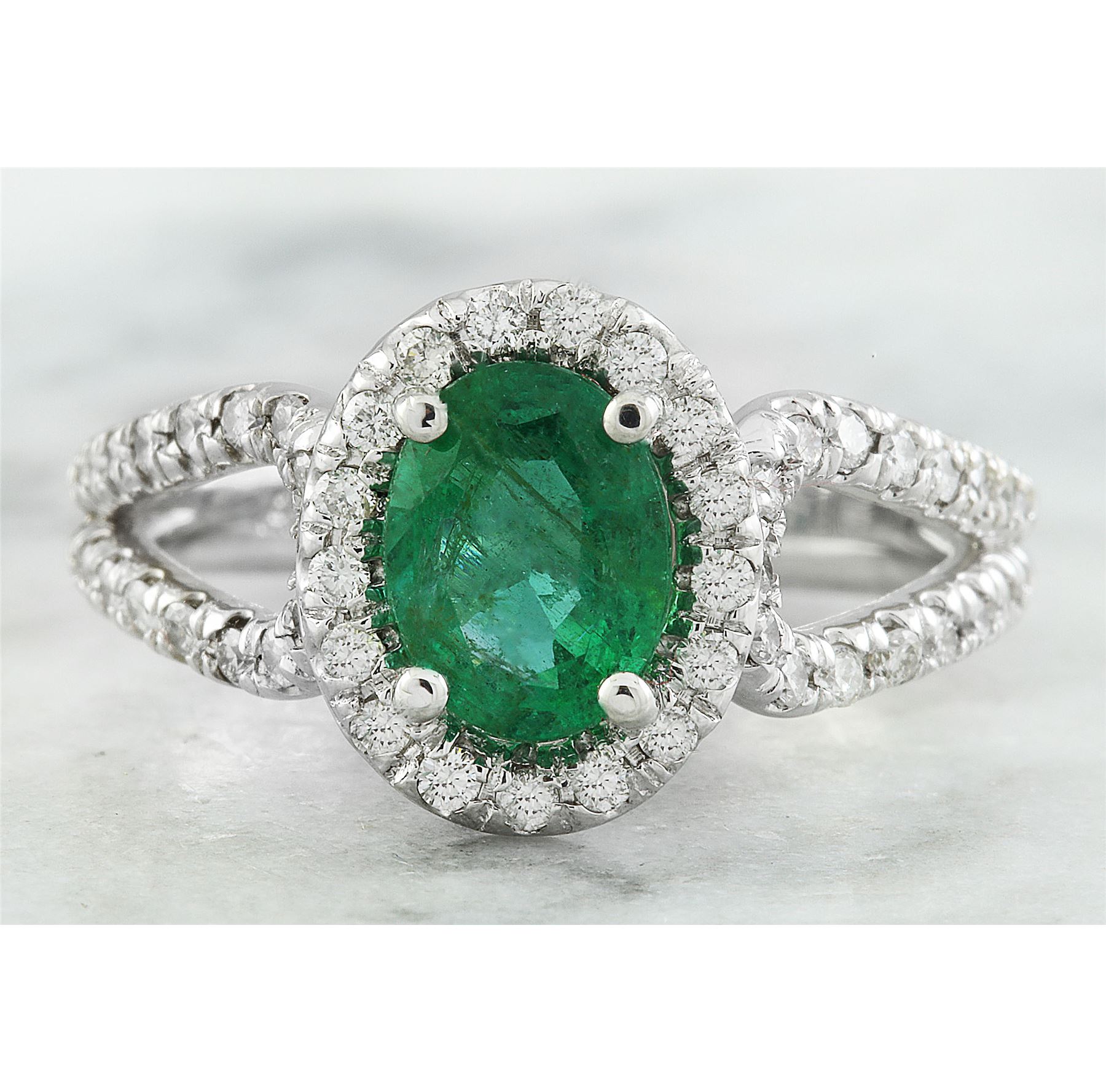 1.70 CTW Emerald 14K White Gold Diamond Ring