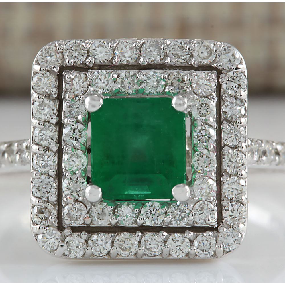 1.70 CTW Natural Colombian Emerald And Diamond Ring In 18K White Gold