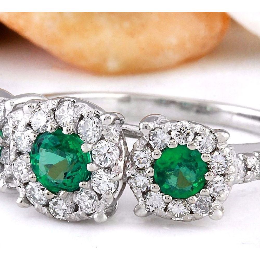 1.70 CTW Natural Emerald 18K Solid White Gold Diamond Ring