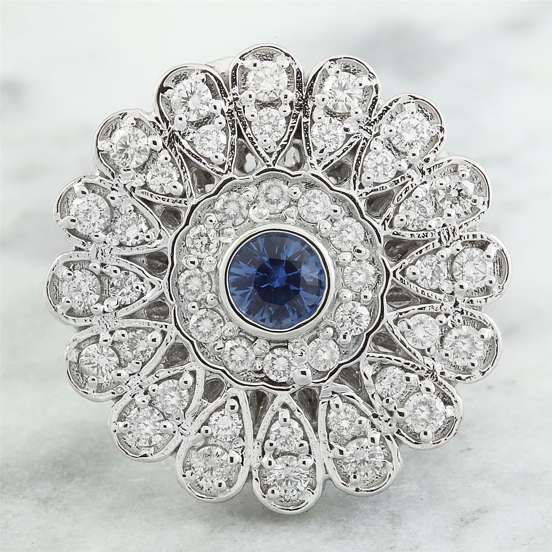 1.70 CTW Sapphire 18K White Gold Diamond Ring