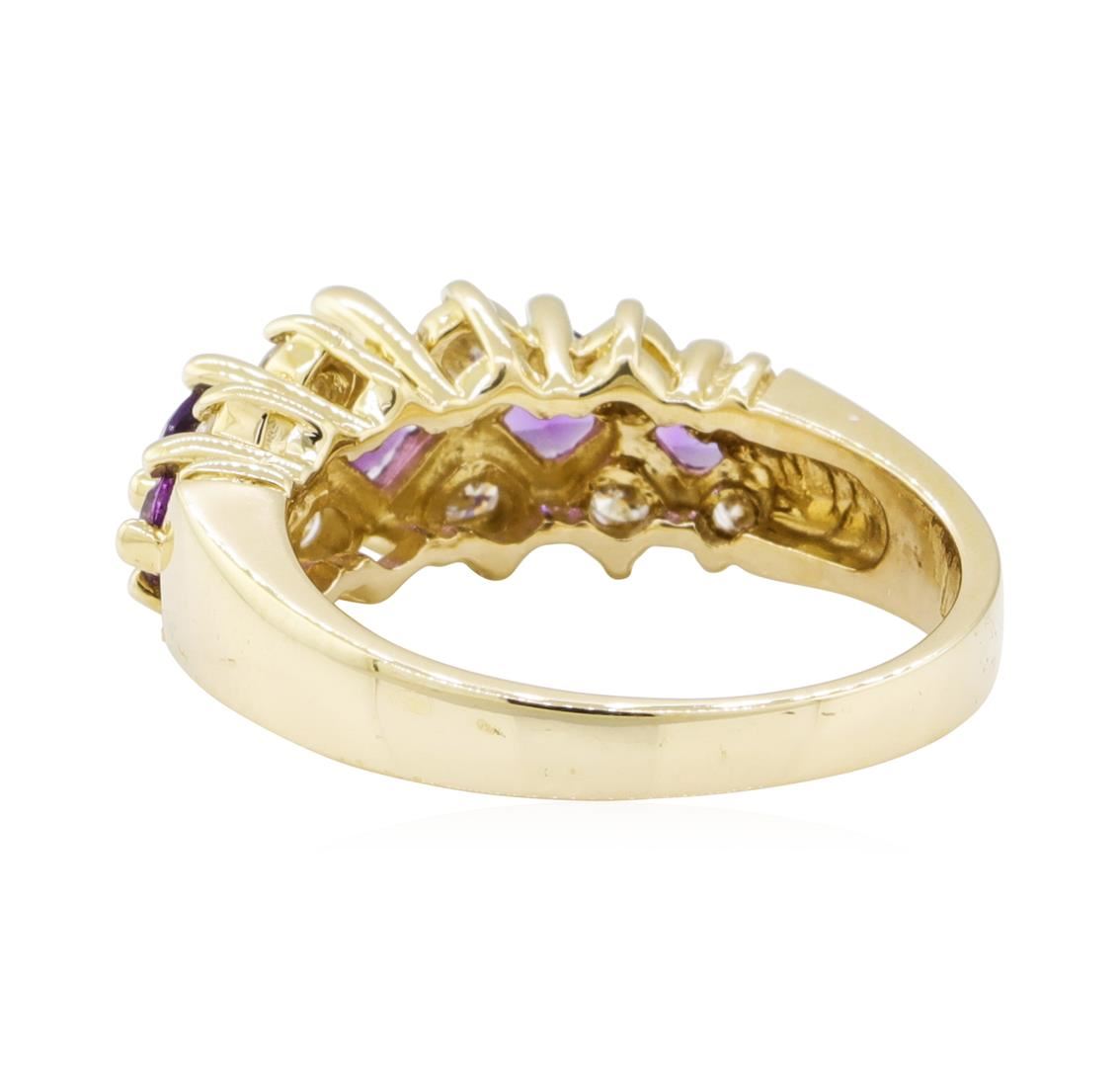 One ring featuring: 14KT yellow gold weighing 5.2 grams containing amethyst weighing 1.30ctw and diamonds weighing 0.40ctw.