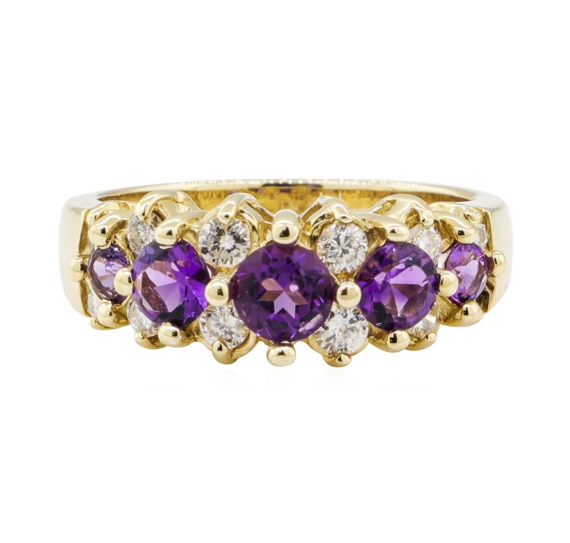 One ring featuring: 14KT yellow gold weighing 5.2 grams containing amethyst weighing 1.30 ctw and diamonds weighing 0.40 ctw.