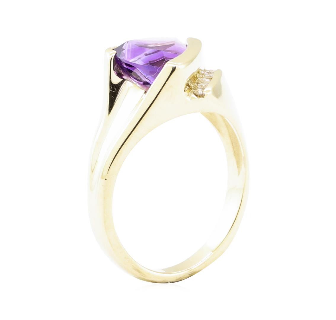 One ring featuring: 14KT yellow gold weighing 5.0 grams containing one amethyst weighing 1.60 ct and diamonds weighing 0.10 ctw.