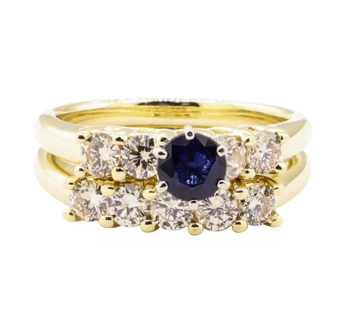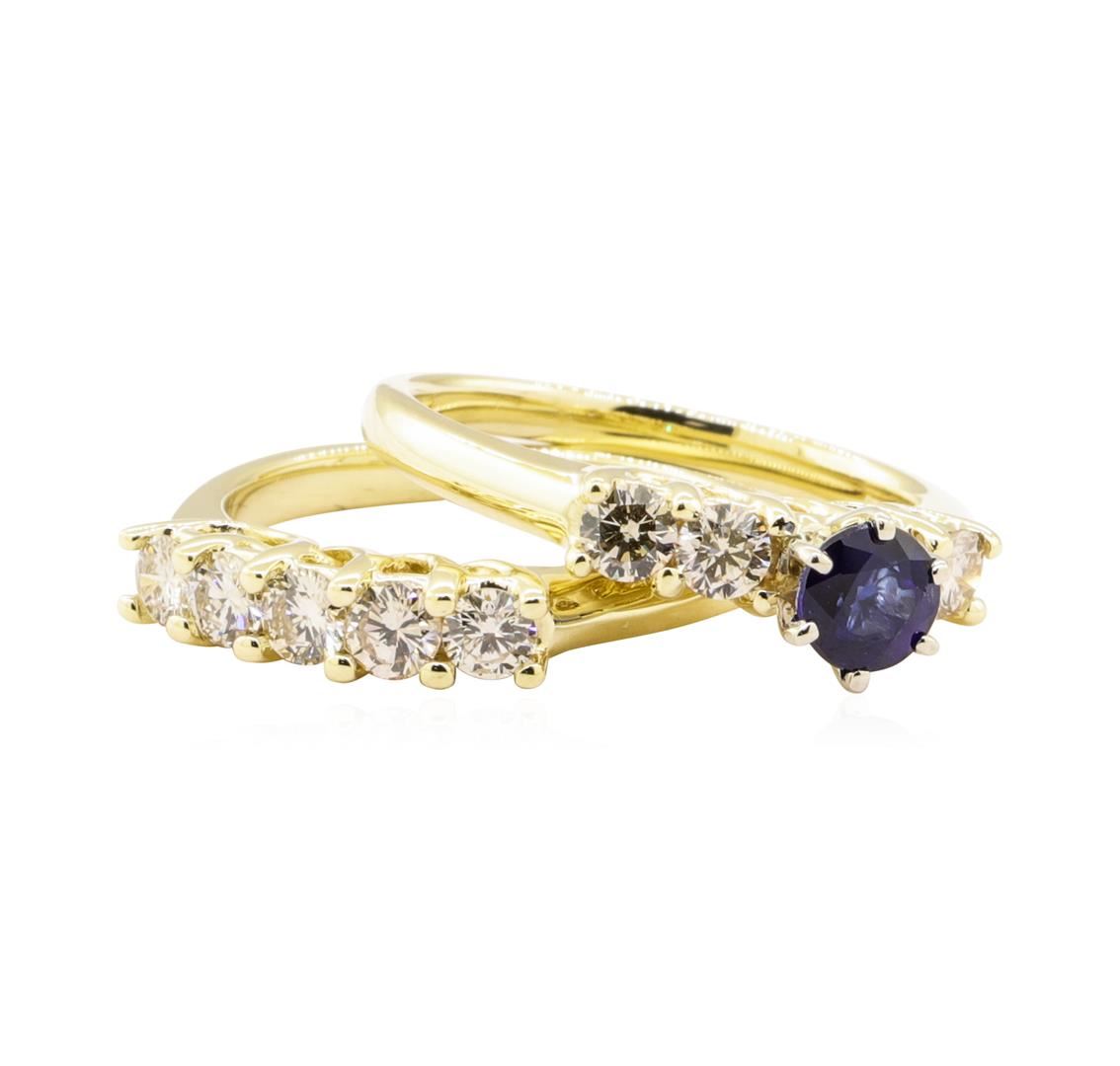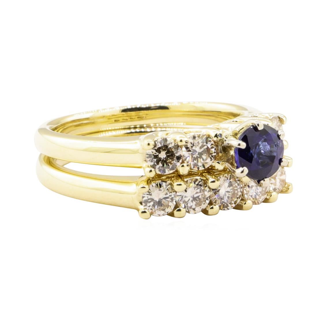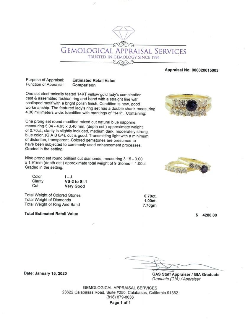 One set electronically tested 14KT yellow gold lady's combination cast & assembled fashion ring and band with a straight line with scalloped motif with a bright polish finish. The featured lady's ring set has a double shank measuring 4.30 millimeters wide