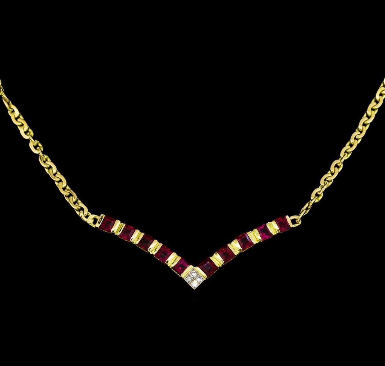 One lady's necklace featuring: 18KT yellow gold weighing 12.3 grams containing rubies weighing 1.70ctw and diamonds weighing 0.04ctw. The lady's necklace measures approximately sixteen inches in length.