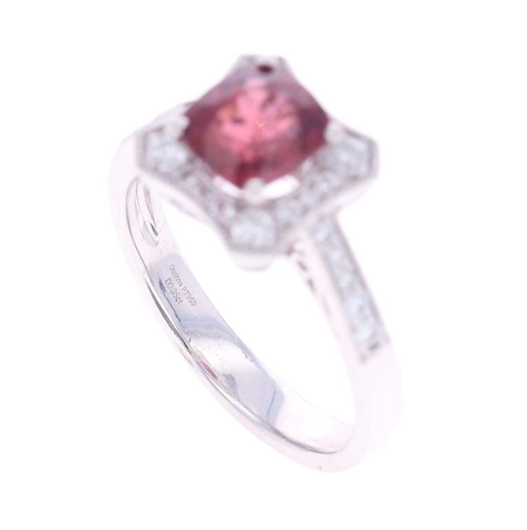 Featured in this lot is this 1.70ct spinel and VS diamond platinum ring with IAS paperwork. The ring shows a polished, stamped, and tested platinum construction with a raised lattice and is marked 'Orianne' and 'PT950' on the inside of the ring band. The center stone shows a cushion cut brilliant spinel gemstone that shows a dark purplish coloration and a total weight of 1.70cts. The center stone and shoulders of the band are decorated with round brilliant cut diamonds that shows G-H coloration and a VS - SI clarity with a total diamond weight of 0.35cts. The ring size is US 7. The piece comes complete with IAS(Independent Appraisals Services, a GIA certified lab IAS Appraisal Number#: 20523EW) report and appraisal confirming the above info and giving a total value of $8,935.00.