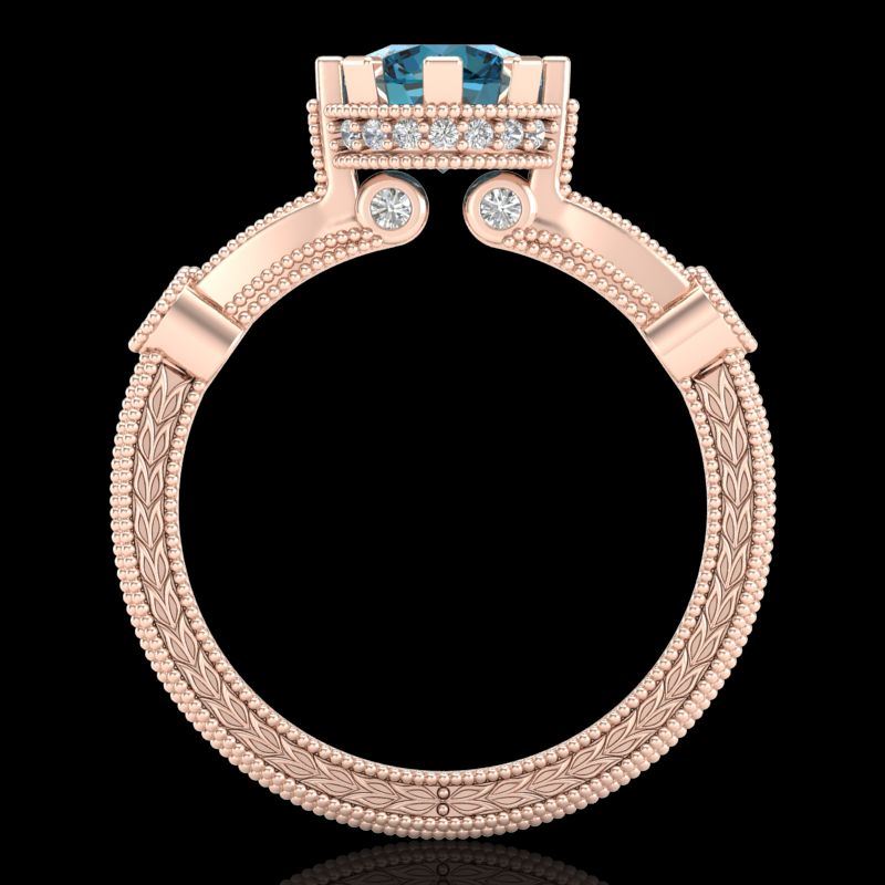 REF-263T6M -37860 ---- 1.71 CTW Fancy Intense Blue Diamond Solitaire Art Deco Ring 18K Rose Gold ---- Luxury Designer Brand Ring Appraised at $17,400 Certificate Number US37860 18k Rose gold, Ring Size is 7, Ring measuring approx. Uniform, weighing in total approx. 6 grams. Made in the USA and is stamped 18k, Main stone 1.26 carat total weight containing 1 pieces of Intense Fancy Blue color with SI quality Round shape cut Diamond , Stone #2 0.45 carat total weight containing 24 pieces of H-I color with VS/SI quality Round shape cut Diamond