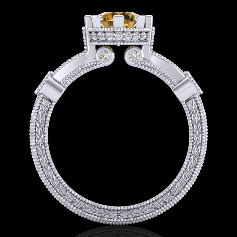 1.71 CTW Intense Fancy Yellow Diamond Engagement Art Deco Ring 18K White Gold ---- Luxury Designer Brand Ring Appraised Retail Price at $15,950 ---- SKU Number US37861 18k White gold Ring Size is 7, Ring measuring approx. Uniform, weighing in total approx. 8.6 grams. Made in the USA and is stamped 18k, Main stone 1.26 carat total weight containing 1 pieces of Intense Fancy Yellow color with SI quality Round shape cut Diamond , Stone #2 0.45 carat total weight containing 24 pieces of H-I color with VS/SI quality Round shape cut
