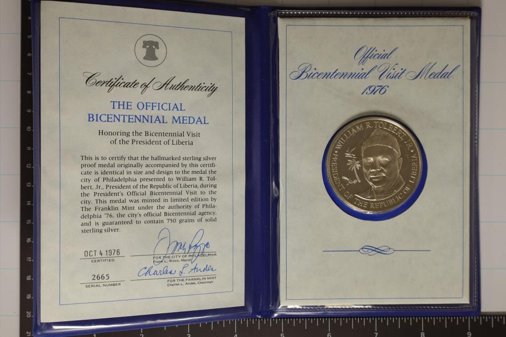 VISIT MEDAL PRESIDENT OF LIBERIA, IN BLUE FOLIO WITH CERTIFICATE BY THE FRANKLIN MINT