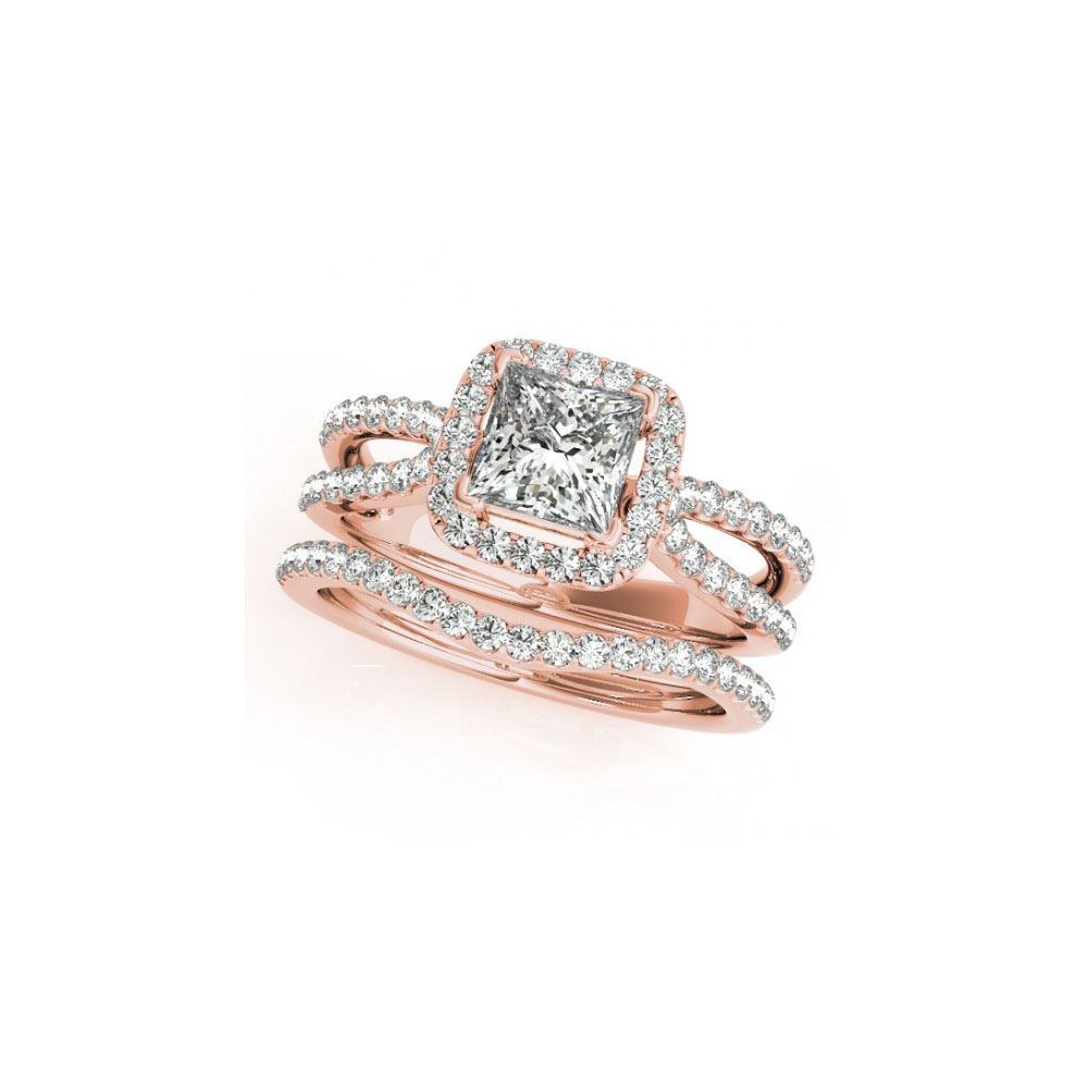 1.71 ctw Certified VS/SI Princess Diamond 2pc Set Ring Halo 14K Rose Gold
