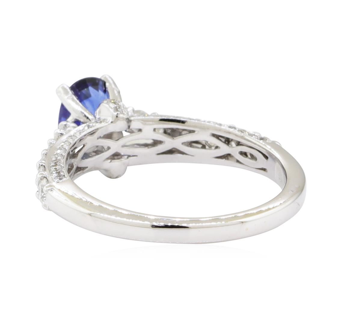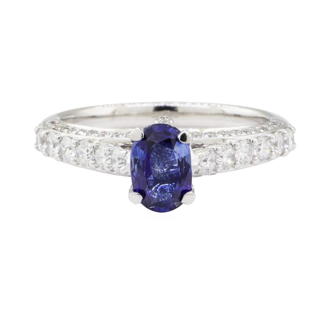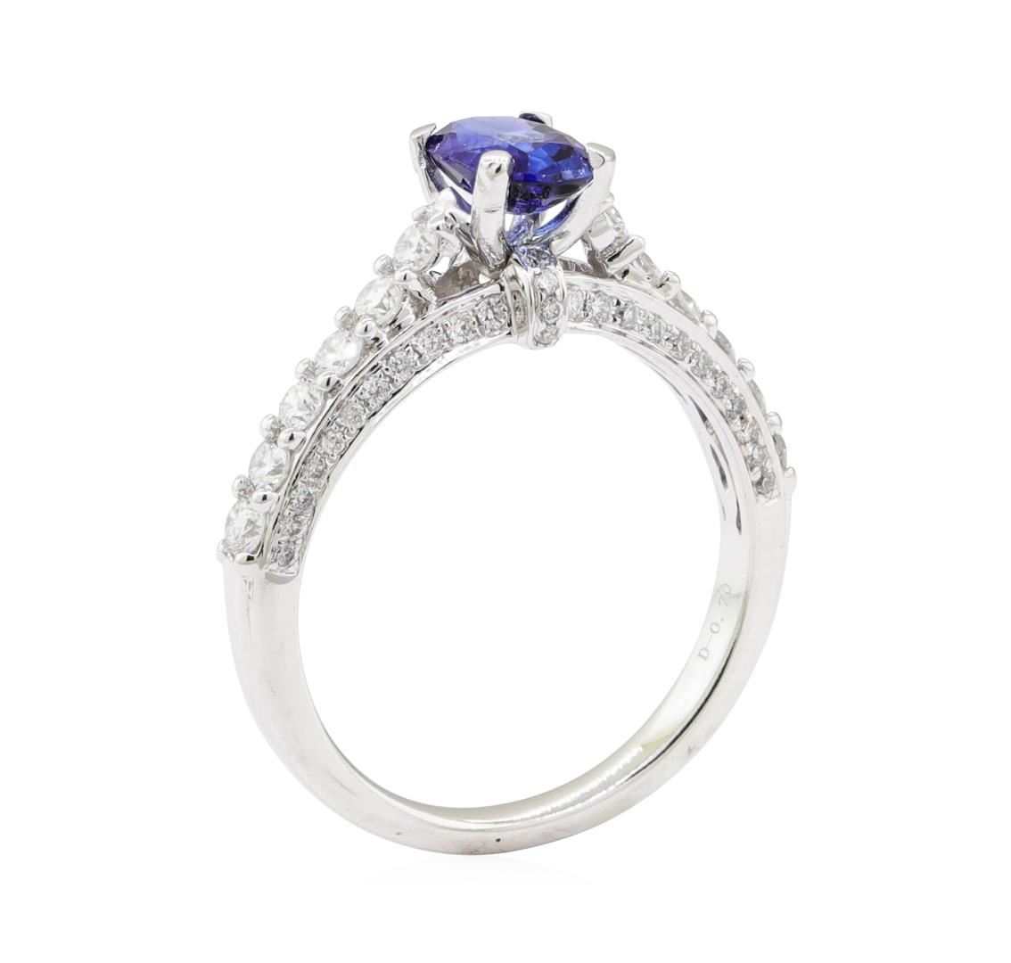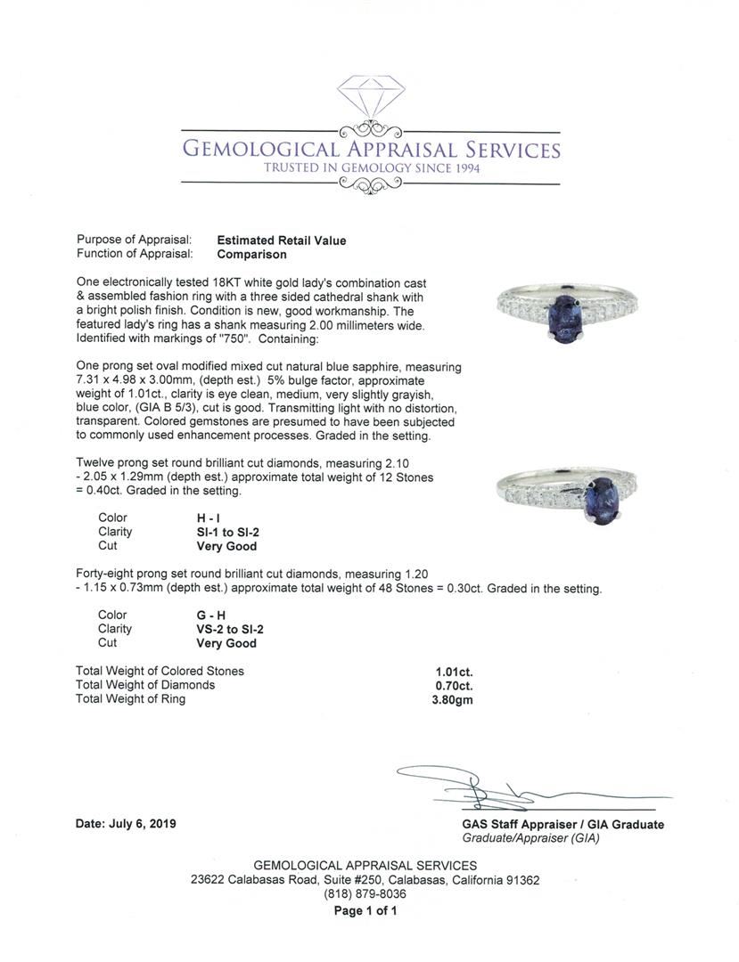 One electronically tested 18KT white gold lady's combination cast & assembled fashion ring with a three sided cathedral shank with a bright polish finish. The featured lady's ring has a shank measuring 2.00 millimeters wide. Identified with markings of '7