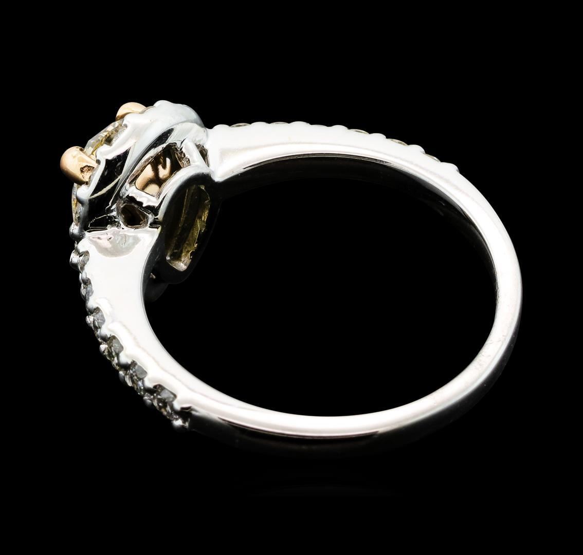 One electronically tested 14KT rose and white gold lady's combination cast & assembled wedding ring with a cathedral halo with a bright polish finish. The featured lady's ring has a shank measuring 1.94 millimeters wide. Identified with markings of '14K'. Condition is new, good workmanship. Containing: One prong set pear shaped cut diamond, measuring 9.00 x 5.35 x 3.50mm (depth est.) , 10.00.%. GTCF approximate weight of 1.09ct. Graded in the setting. Clarity SI-2 Cut Very Good Twenty-Six prong set round brilliant cut diamonds, measuring 1.90 - 1.80 x 1.15mm (depth est.) approximate total weight of 26 Stones = 0.62ct. Graded in the setting. Clarity SI-1 to SI-2. Color: H - I Cut Very Good. Total Weight of Diamonds 1.71ct.. Total Weight of Ring 4.40gm. GAS Appraised.