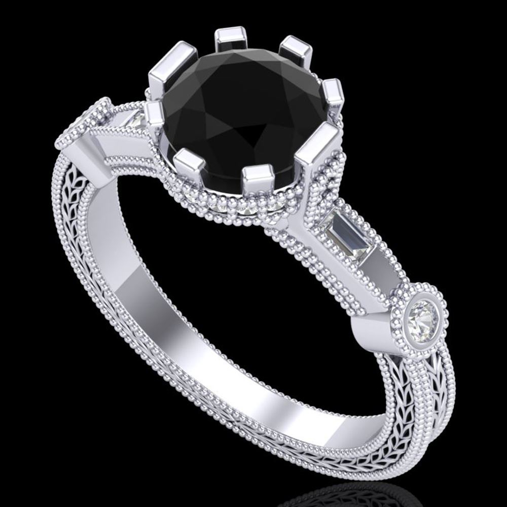 REF-123H6R - SKU: 37856 ---- 1.71 ctw Fancy Black Diamond Engagment Art Deco Ring 18k White Gold