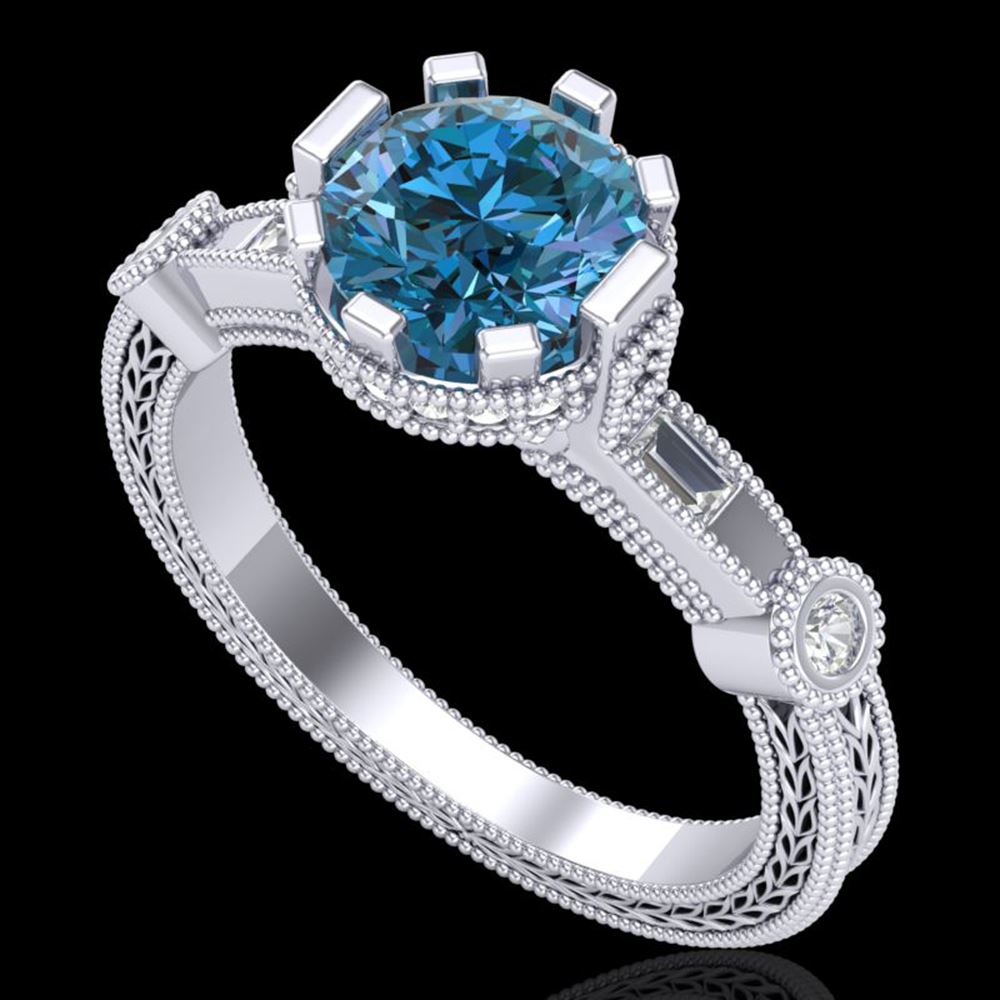 REF-263N6F - SKU: 37859 ---- 1.71 ctw Fancy Intense Blue Diamond Art Deco Ring 18k White Gold